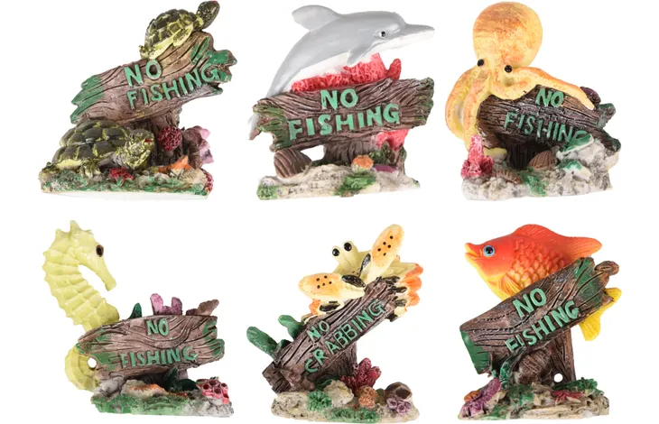 Flamingo No fishing Bord - Декор за аквариуми с надпис No Fishing Размер - + 5,5 X 4 X 6 см. Различни модели.