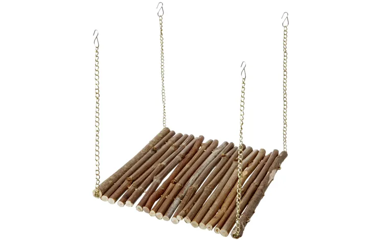 Мост за закачане с въжета за игра Изработен от висококачествена дървесина Часове забавление Насърчава естествения инстинкт за гризане и игра