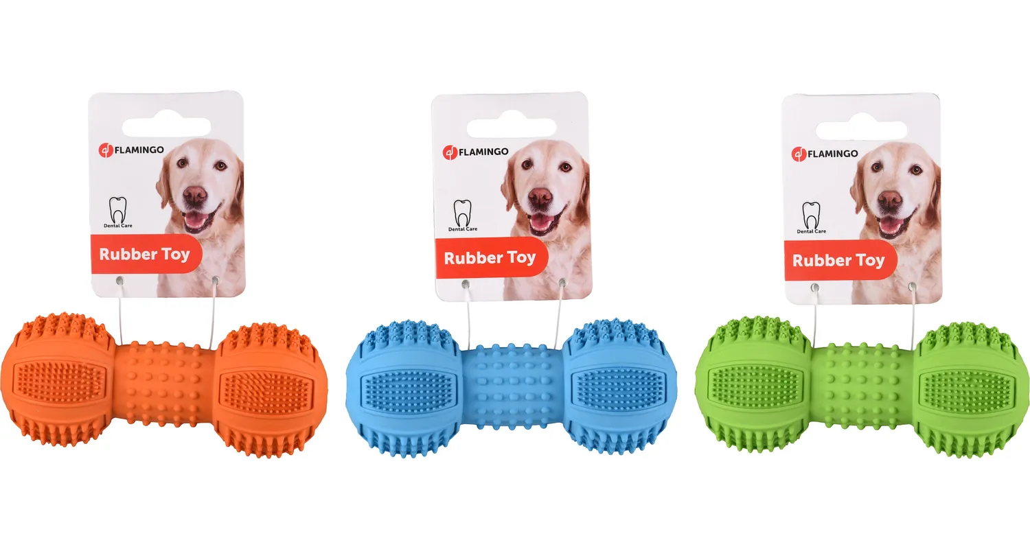 Camon Dog toy - Играчка за куче - TPR двуцветен дъмбел с халка Здрава и издръжлива на дърпане и ръбане. Забавна играчка за куче във формата на TPR двуцветен дъмбел с ринг (черен и оранжев). Размер - 21 см.