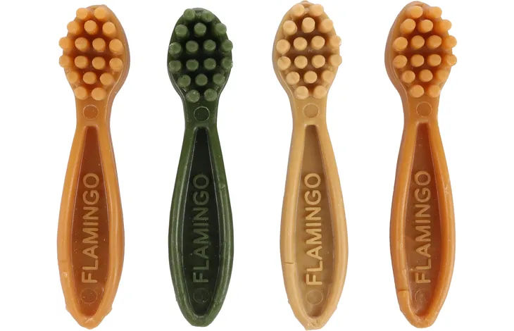 Flamingo Veggie - Дентално лакомство за кучета, вегетарианска четка за зъби, в пакет, 10 см- 8 броя