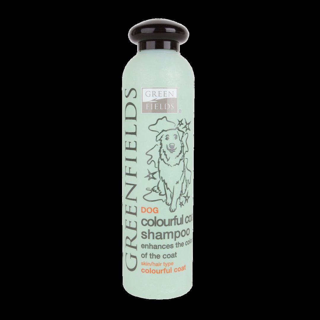 Шампоанът Colorful Coat Shampoo на Greenfields добавя допълнителна лъскавина и блясък към козините от всички цветове. Включва цветни пигменти, които прилепват към козината, за да подсилят естествения цвят на козината, за да остане по-красива. Шампоанът е силно концентриран и следователно икономичен за използване.