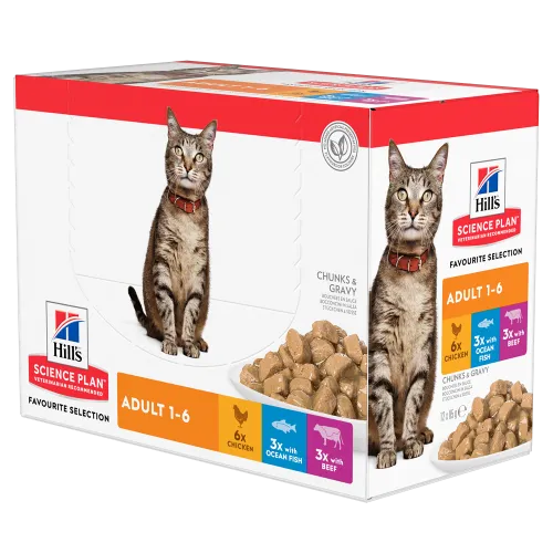 Hill's Science Plan Feline Adult пауч с океанска риба е пълноценна храна за котки в зряла възраст от 1 до 6 год. Пауч хапки в сос грейви с океанска риба (4%).Вашата котка ще обикне вкуса на крехките парченца в сос в Hill's Science Plan Adult с океанска риба. Това е перфектният баланс между вкус и питателност – специална формула, която посреща енергийните нужди на котките в разцвета на живота им. Приготвена от висококачествени, лесно смилаеми съставки.Таурин за здраво сърце, балансирани минерали за здрави бъбреци и пикочен мехур.Висококачествен протеин за поддържане на мускулатурата.Витамин Е, омега-3 и омега-6 мастни киселини за красива кожа и козина.