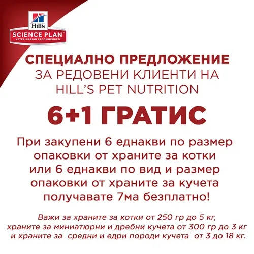 100% гаранция за удовлетвореност или можете да върнете опаковката. Ние сме уверени, че Вашият домашен любимец ще се наслаждава на продуктите Hill’s. Толкова сме уверени, че предлагаме 100% гаранция за връщане на парите. *