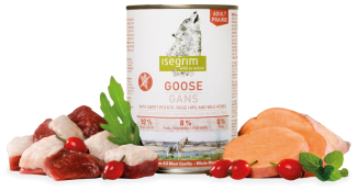 Isegrim Adult - Консерва за кучета с месо от гъска, сладък картоф и билки 400 гр.isegrim® е пълноценна храна, съдържаща най-доброто, което природата може да предложи, в комбинация,вдъхновена от начина на живот на вълка – високо съдържание на прясно месо, много зеленчуци,плюс горски плодове и диви билки. Висококачествени съставки с ободряващи хранителни вещества, витамини и масла,подходящи за метаболизма и имунната система на кучетата.
