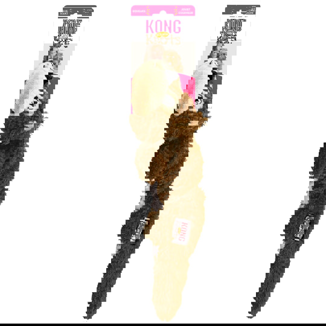 Kong Scrunch Knots Racoon Small/Medium - Забавна плюшена играчка за кучета - енот Плюшеният материал се плъзга около вътрешната спирална струна, докато еластичните страни създават естествено движение, за да насърчат играта. Вътрешните възли задоволяват естествените инстинкти и тези играчки не съдържат подплата за по-малко бъркотия. Писъци за допълнително удоволствие.