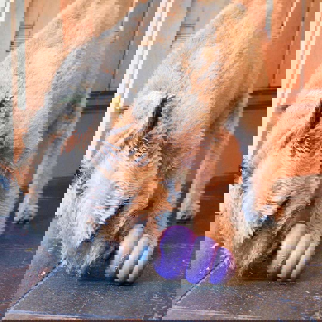 Camon dog toy - Играчка за куче TPR двуцветна топка с ринг и пищялка Забавна играчка за куче във формата на TPR двуцветна топка (черно и оранжево) с пръстен. Оборудван с вътрешен пищял. Размер - 26 см. 1 брой