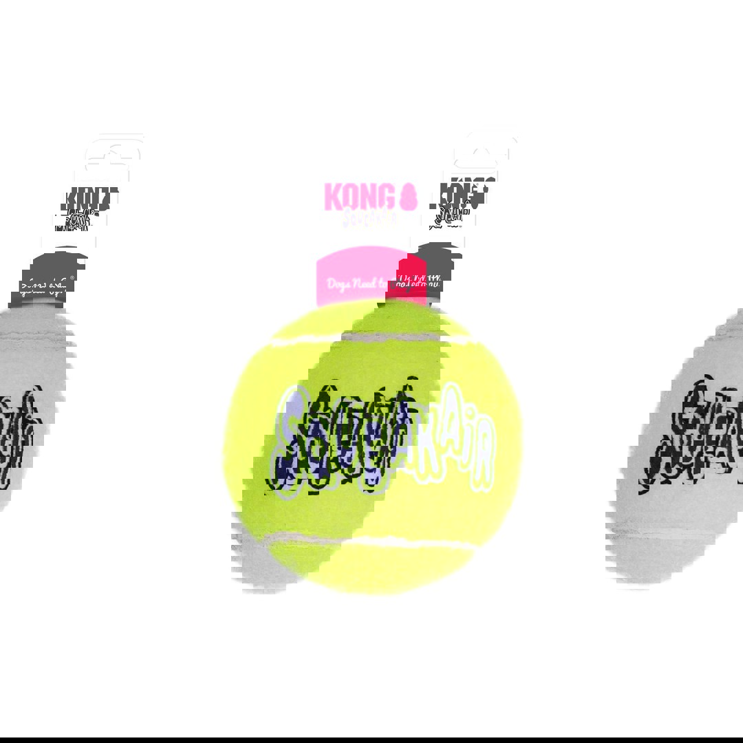 Топката KONG SqueakAir съчетава две класически играчки за кучета - тенис топка и пискюл - за да създаде перфектната играчка за извличане. Изработена е от специален неабразивен филц.