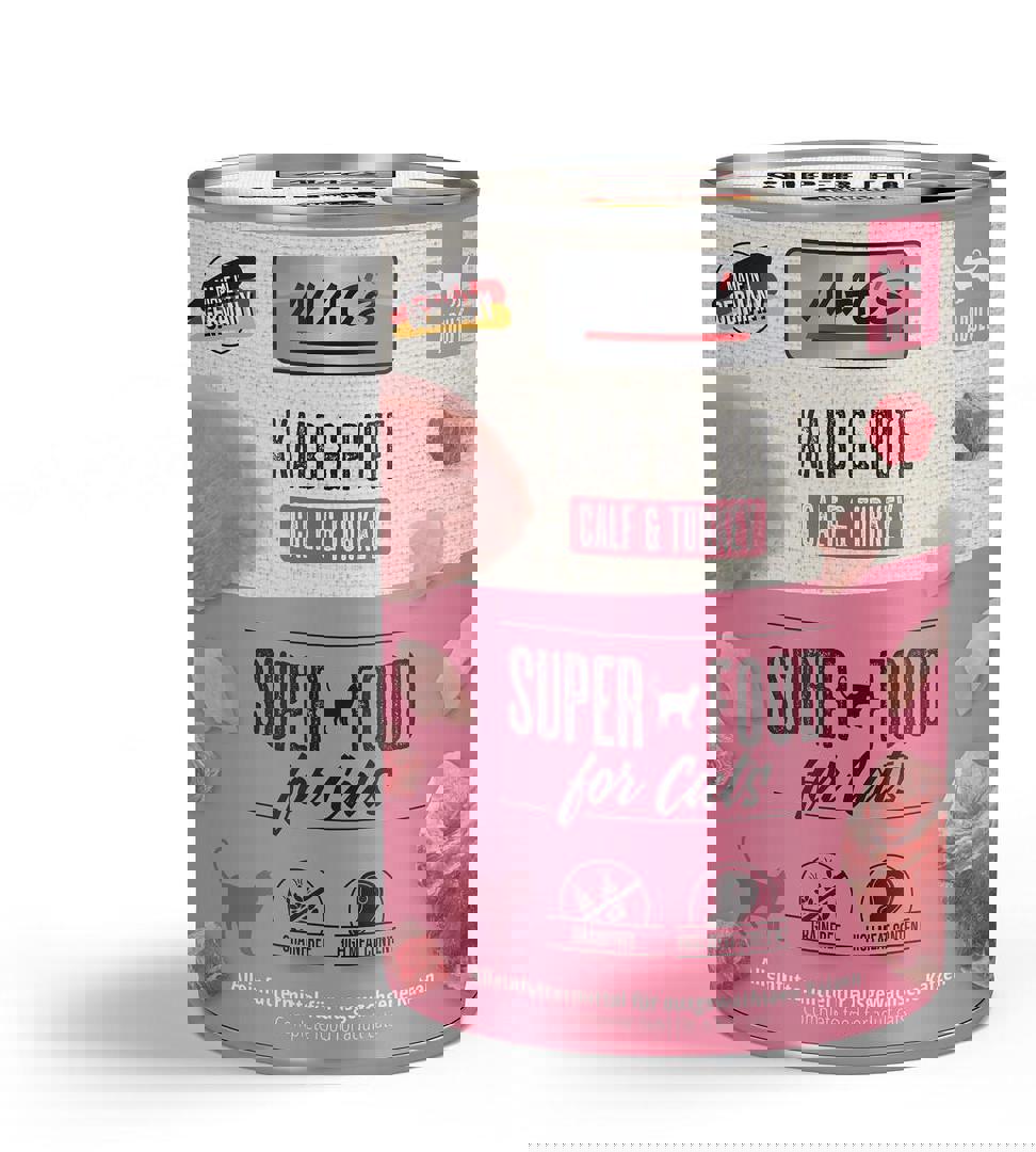 Mac’s Cat Beef, Duck and Rabbit - Премиум консервирана храна за котки с патешко, телешко и заешко месо. Mac’s Cat Патешко, заешко и говеждо (мин. 70% месо) Състав: месо (мин. 15% дивеч, 15% патица, 15% заек, 15% говеждо мин. 10% сърца), животински субпродукти (черен и бял дроб), месен бульон, минерали. Анализ: ,протеини: 10, 6%, мазнини: 5, 6%, фибри: 0, 3%, пепел: 2%, влага: 80%, таурин: 1000 мг/кг, витамин А: 2000 I. E/кг, витамин D3: 200 I. E/кг, витамин Е: 25 мг/кг. Производител: PRO PET KOLLER Германия. Патешко, заешко и говеждо (мин. 70% месо)