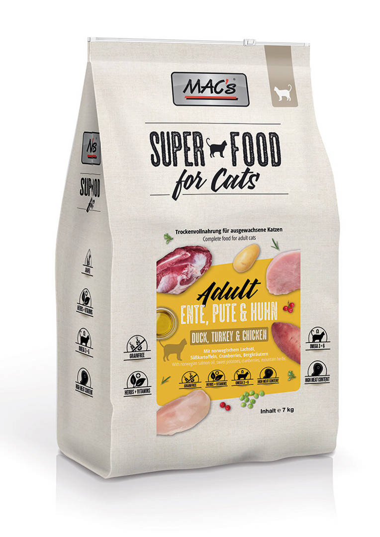 Съдържание: Протеин от домашни птици (сушен, 24%), царевица, сорго, протеин от говеждо месо (сушен, 5%), пулп от суровo цвекло (отстранена захар), хидролизиран протеин, грах (2%) , ленено семе (1%), сьомга (0.5%), дрожди (изсушени, 0.5%), цикория (суха, 0.5%), калиев хлорид.