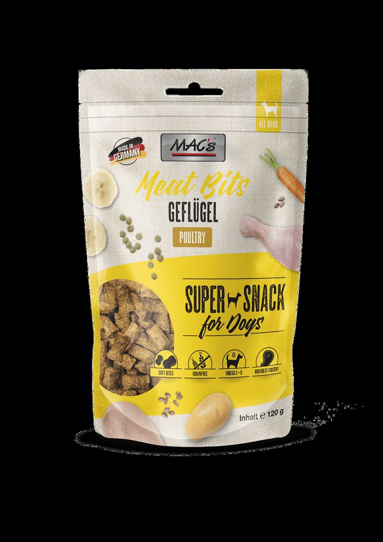 MAC'S DOG Meat Bits Beef - Премиум лакомство, пауч за кучета, без зърно, с телешко месо. Пълноценна храна за кучета.Вкусна и полезна!Вкус: телешко месоБез зърнени култури.70 % месо.30 % плодове и зеленчуци.
