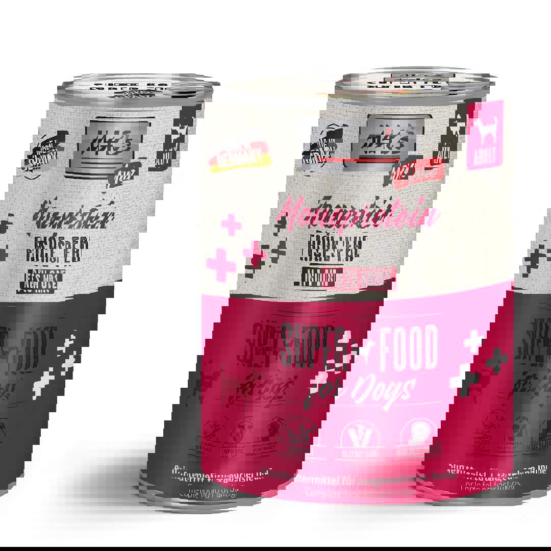 Animonda Gran Carno SP Supreme Pure Horse - Консервирана храна за кучета с един източник на протеин конско месо. GranCarno Single Protein означава вкусно, здравословно, балансирано хранене - само един източник на животински протеини. Подходяща храна за възрастни кучета от 1 до 6 години.Суперхраните са ценен източник на специални хранителни вещества като фитонутриенти, антиоксиданти, минерали и микроелементи и по този начин могат да допринесат за благосъстоянието на кучето. Подбраните пресни, местни съставки гарантират уникалния вкус, който кучетата толкова много обичат.GranCarno Single Protein се произвежда без зърно, соя, захар, подобрители на вкуса, изкуствени оцветители или консерванти. Той осигурява всички основни хранителни вещества, от които се нуждае едно куче. Състав: 65% кон ( бял и черен дроб, месо, сърце), калциев карбонат, натриев хлорид.Аналитичен състав: протеин 11. 5%, мазнини 5. 5%, фибри 0. 5%, пепел 2. 5%, влага 78%.
