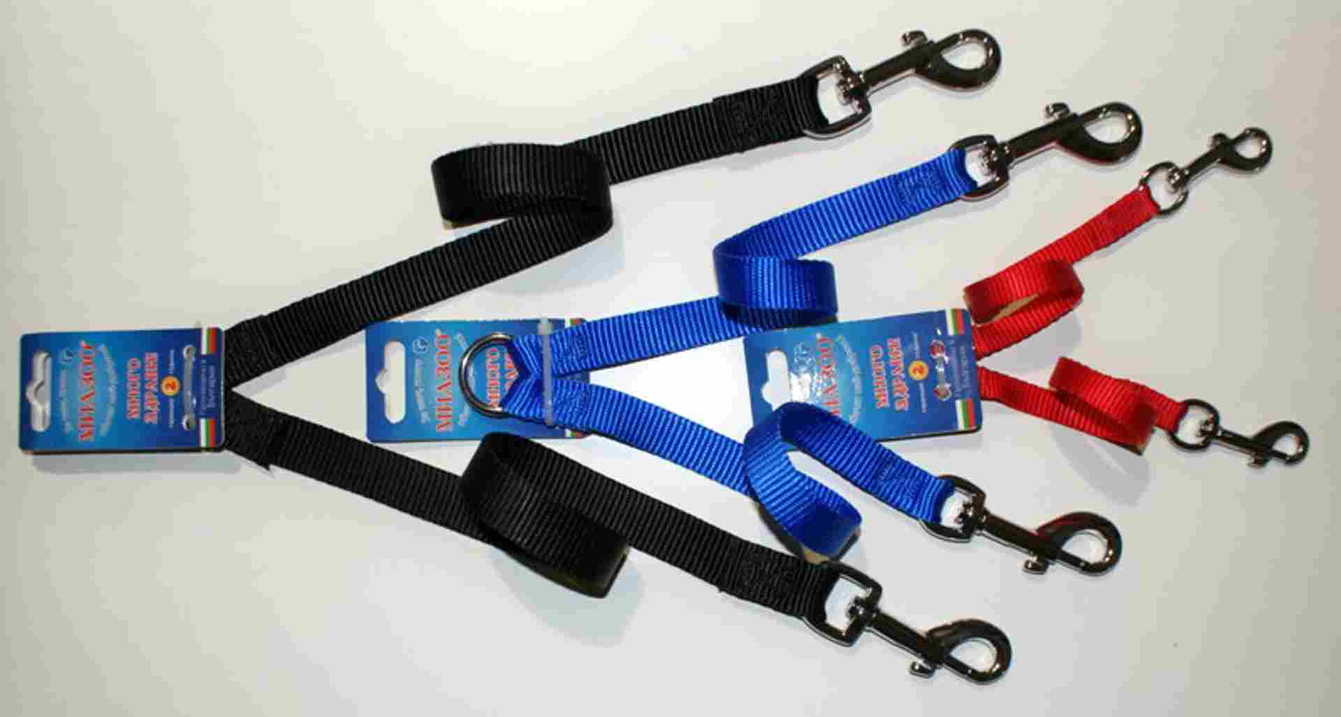 Миазоо - Накрайник, повод изкуствена лента за две кучета