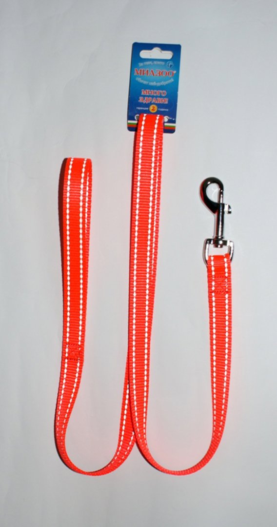 Миазоо - Повод за кучета, оранжева лента със светлоотразителни нишки, 20мм/120см
