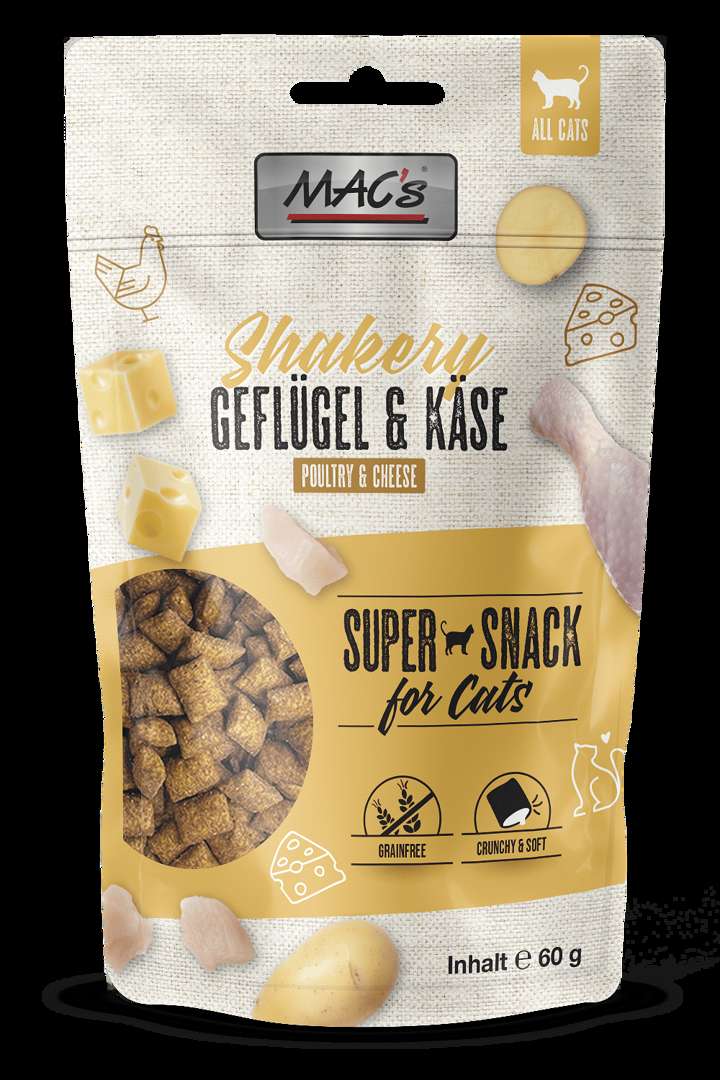Mac's Shakery Chicken & Cheese - Премиум лакомство за котки, без зърно, снакс с пилешко месо и сирене, 60 гр.
