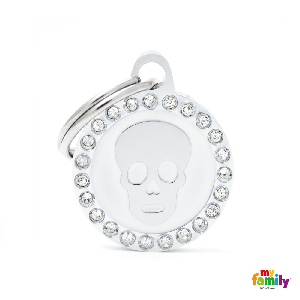 My Family Dog Tag Fuchsia Swarovski's Skull Circle Strass - Ръчно изработен медальон , кръг с череп- адресник за кучета 2.15 см. / 2.85 см. - бял