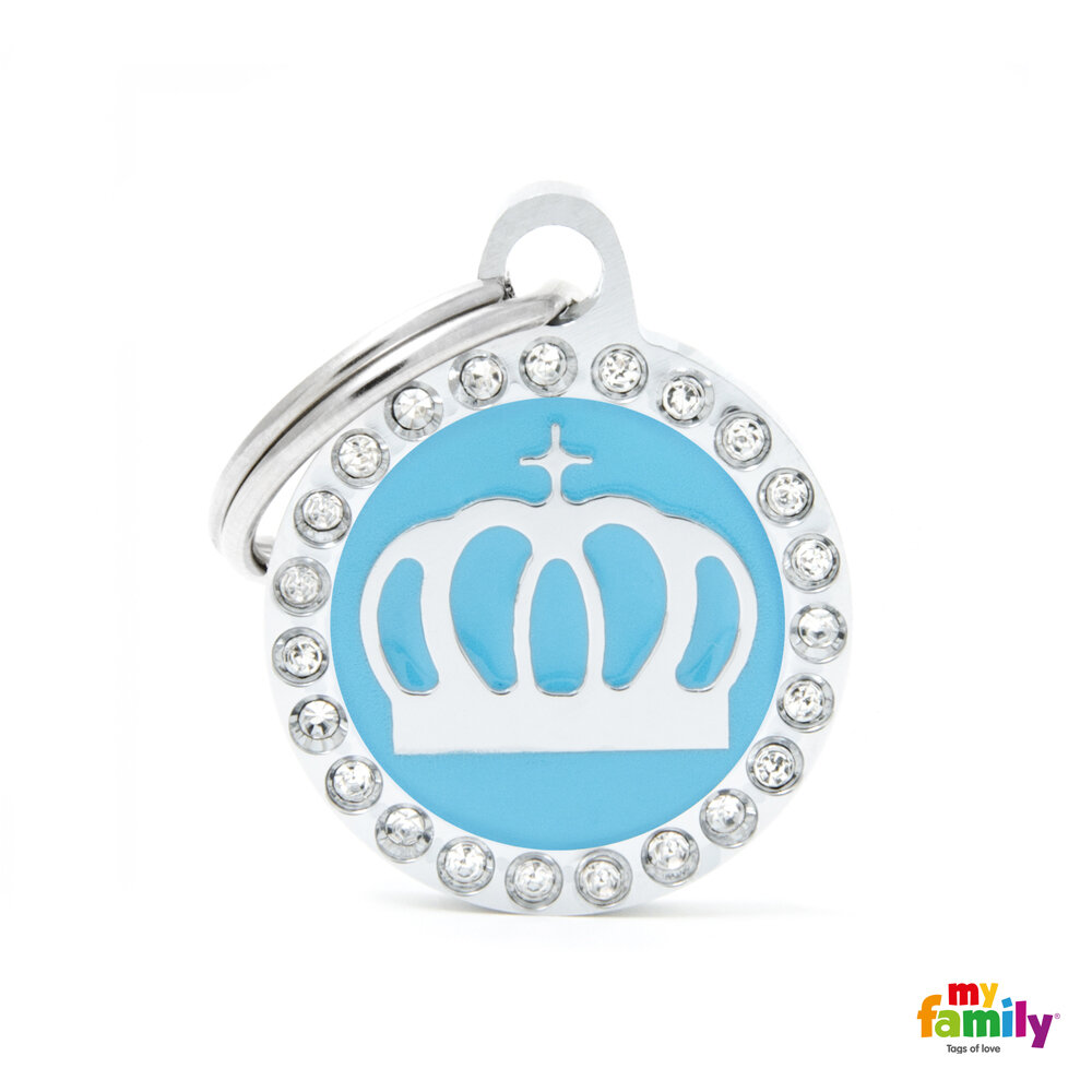 My Family Glam Crown Circle Strass - Елегантен кучешки адресник - корона, Сваровски, бял