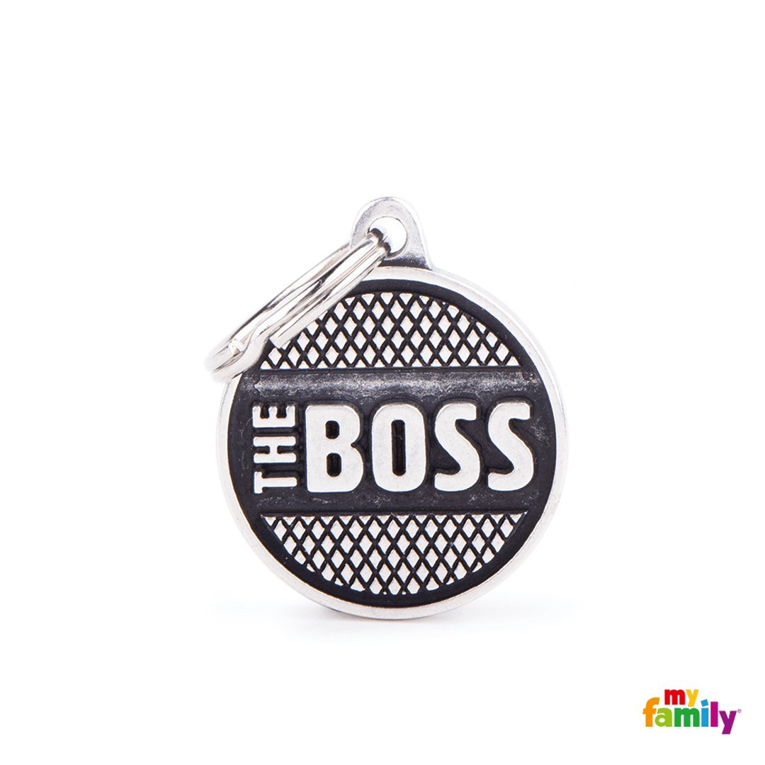 My Family Id Tag - Елегантен алуминиев кучешки адресник медальон с надпис The Boss Когато творчеството и въображението се сливат с занаятчийския опит в производството на метали, резултатът е неподражаема колекция. Етикети от MyFamily, ръчно емайлирани, изразяват съвременността на света на социалните мрежи. Съобщения, емотикони, нови често срещани поговорки правят всеки таг „говорещ“ обект. Много форми, сред които и топките на най-обичаните спортове! Увлечете се от въображението и съблазнете от качеството. Произведено в Италия