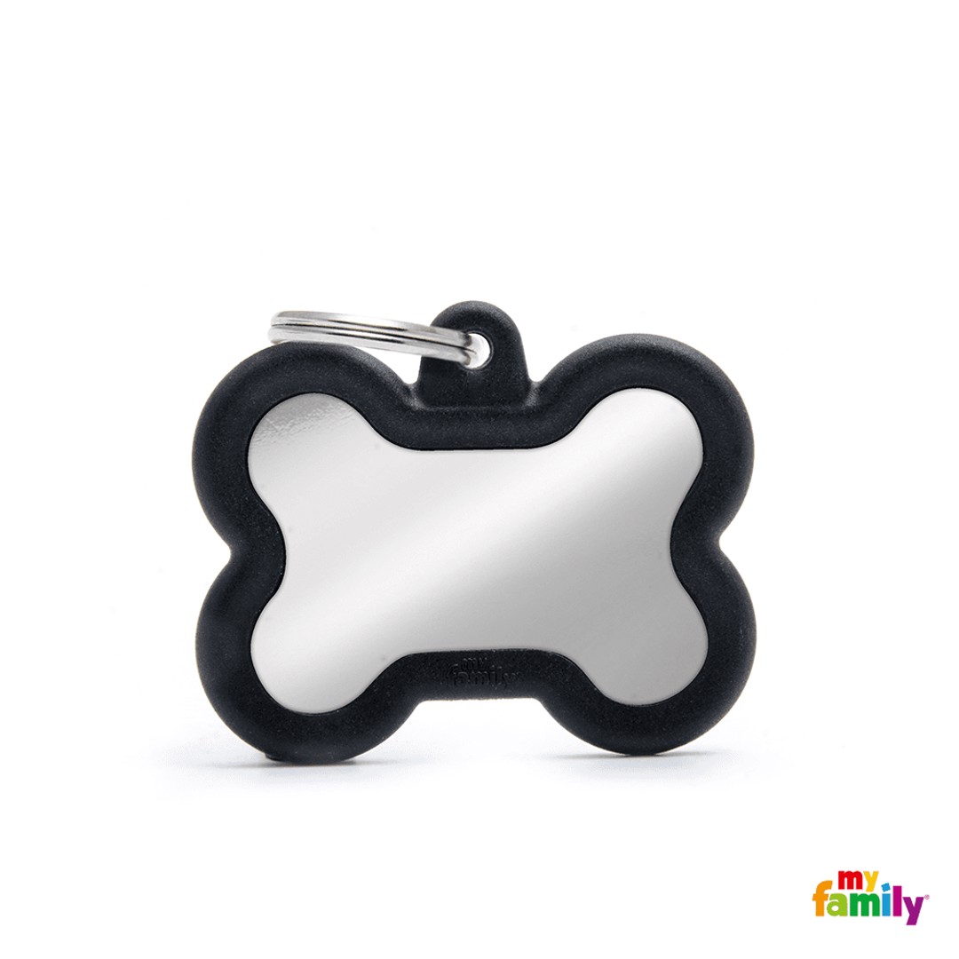 My Family Id Tag - Елегантен хромиран кучешки адресник медальон във форма на кокал - черен