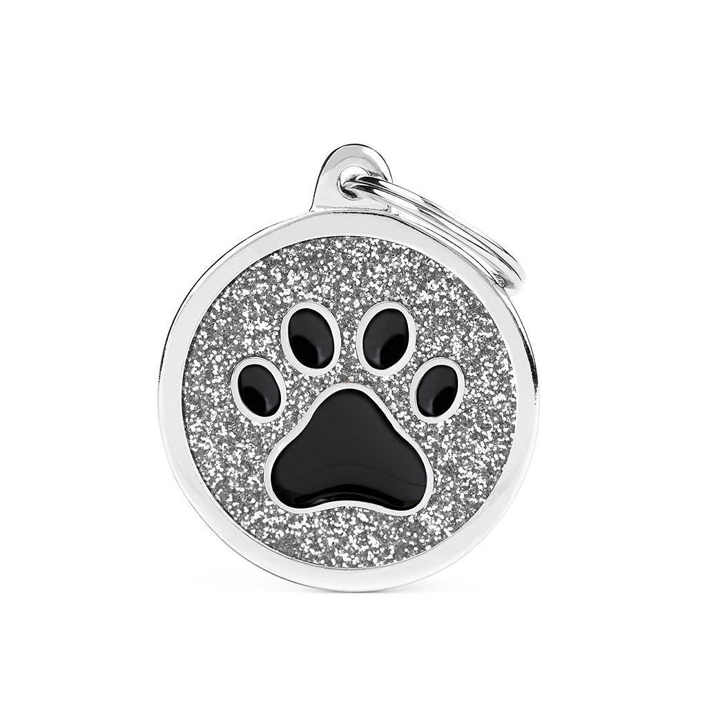 My Family Id Tag - Елегантен кучешки адресник медальон, кръгъл с лапа, сив