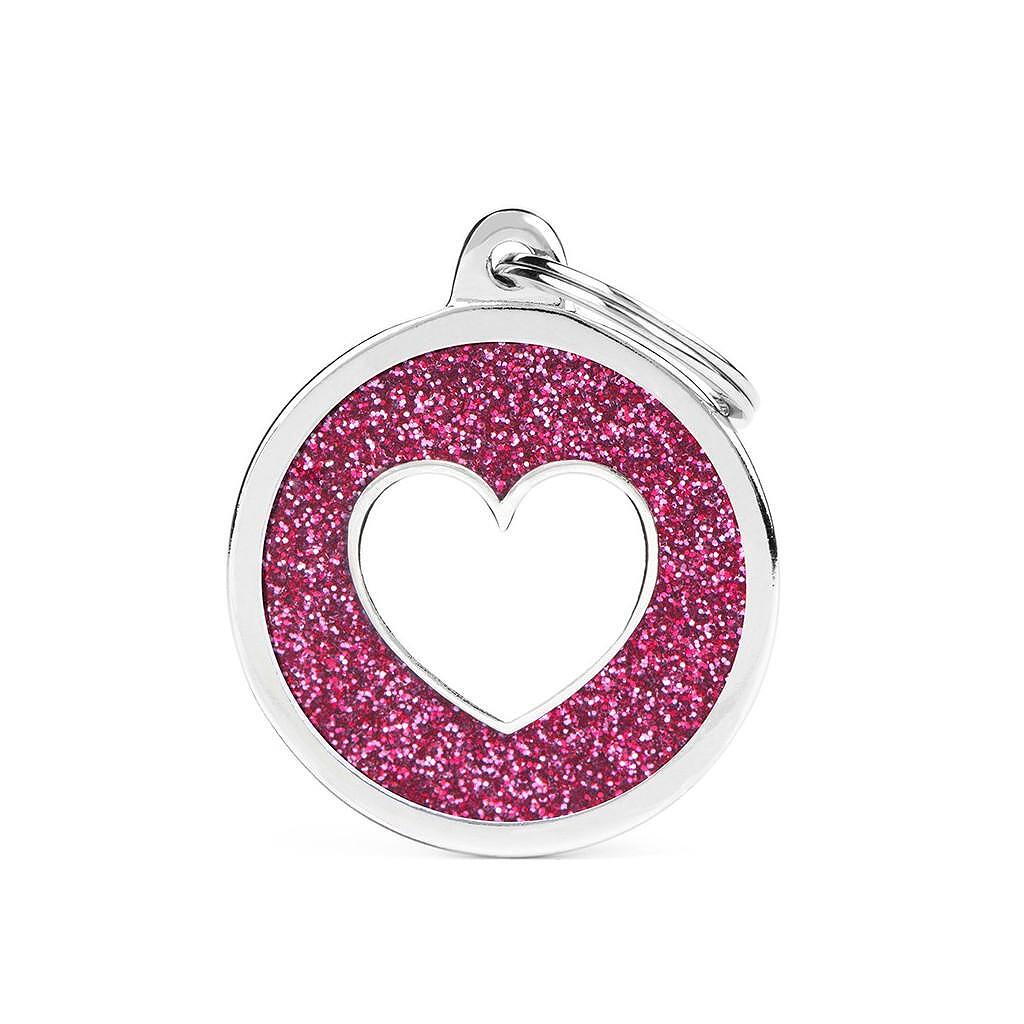 My Family Id Tag - Елегантен кучешки адресник медальон, кръгъл със сърце - сив