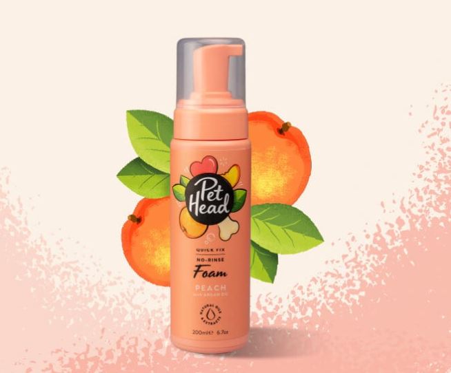 Шампоанът-пяна Pet Head Quick Fix е шампоан-пяна без отмиване за куче с праскова и арганово масло. Той използва масла от арган и кокос за неутрализиране на миризмите, оставяйки кучетата да миришат на свежо и чисто, като същевременно нежно овлажнява и подхранва кожата и козината на вашия домашен любимец. Екстрактът от алое вера омекотява и успокоява кожата. Подходящ за кучета на възраст над 8 седмици.