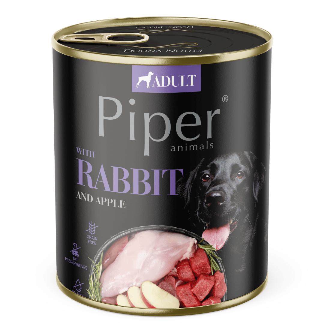 Piper Adult Dog – Консервирана храна за израснали кучета със заешко месо и ябълки, 400 гр. Пълноценна храна за израснали кучета от всички породи със заешко месо и ябълки.Кучето се нуждае от правилна диета, за да се радва на живота! Тази храна за домашни любимци със заек съдържа високосмилаеми пълноценни протеини и мастни киселини - n-3 и n-6.