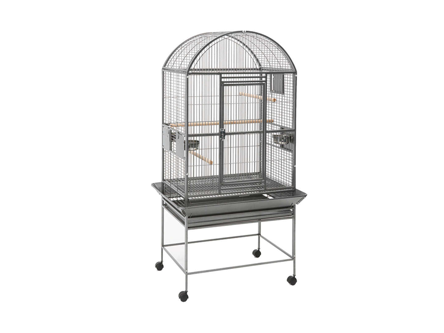 Savic - Метална клетка Hamilton Play Pen,чудесна за големи папагали 60 х 55 х 158 см. Клетка Hamilton Play Pen от Savic, Белгия, е чудесен избор, ако отглеждате папагали. Тя е голяма, удобна и оборудвана с 2 масивни дървени кацалки и 5 стоманени хранилки. Разполага още и с механизъм за заключване и стойка на колелца. Предлага възможност за отваряне отгоре с включена кацалка и хранилки над клетката. Идеална е за Жако, Амазонски папагали, малък и голям Александър. Размери 158x55x60 см. Произведено в Белгия от Savic. Съвети: Преди да си купите птица, трябва да изберете клетка, която е толкова важна, колкото изборът на птицата. За да се чувства вашата птица комфортно, клетката трябва да е толкова голяма, колкото може да си позволите. Не се заблуждавайте, че щом може да си разтвоти крилете вътре това ѝ е достатъчно. Някой видове имат нужда от по-специфична форма и модел клетка, както и от различно разположение и брой на кацалките, хранилките и поилките. Консултирайте се за нуждите на избраната от вас птица в специализираните магазини. Къпането на папагалите е част от всекидневната им грижа за перата. Спомага за премахване на натрупания прах, овлажнява кожата и перата. Ако нямате възможност да поставите постоянно къпалка в клетката, добре е да я слагате сутрин, за да може до вечерта птицата да изсъхне. Оставете птицата сама да избере кога да се къпе и никога не я насилвайте. Ако в началото не желае да се къпе, това не означава, че няма да го направи след ден, два или след седмица. Водата трябва да е хладка, но имахте предвид, че мократа птица може да се разболее, ако в стаята е твърде студено или става течение. И все пак не банята ще разболее птиците, а слабата имунна система, стресът, неправилната диета и лошата хигиена. Къпането, чрез пръскачка за цветя, не е толкова ефективно, а това е важно за добро поддържане на перата на всяка птица.