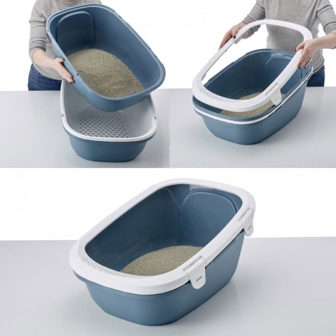 Ferplast Birba - открита котешка тоалетна със сито 55,5 / 45,5 / 22 cm Открита котешка тоалетна със сито; Изхвърляте само мръсната част от постелката; Чистата част са връща в тоалетната; Лесна за отваряне и затваряне; Удобни странични клипсове. Тоалетната за котки със специална система за почистване чрез сито. Избягва отпадъците и поддържа суха среда. Размери: 55 x 45,5 х h22 cm.