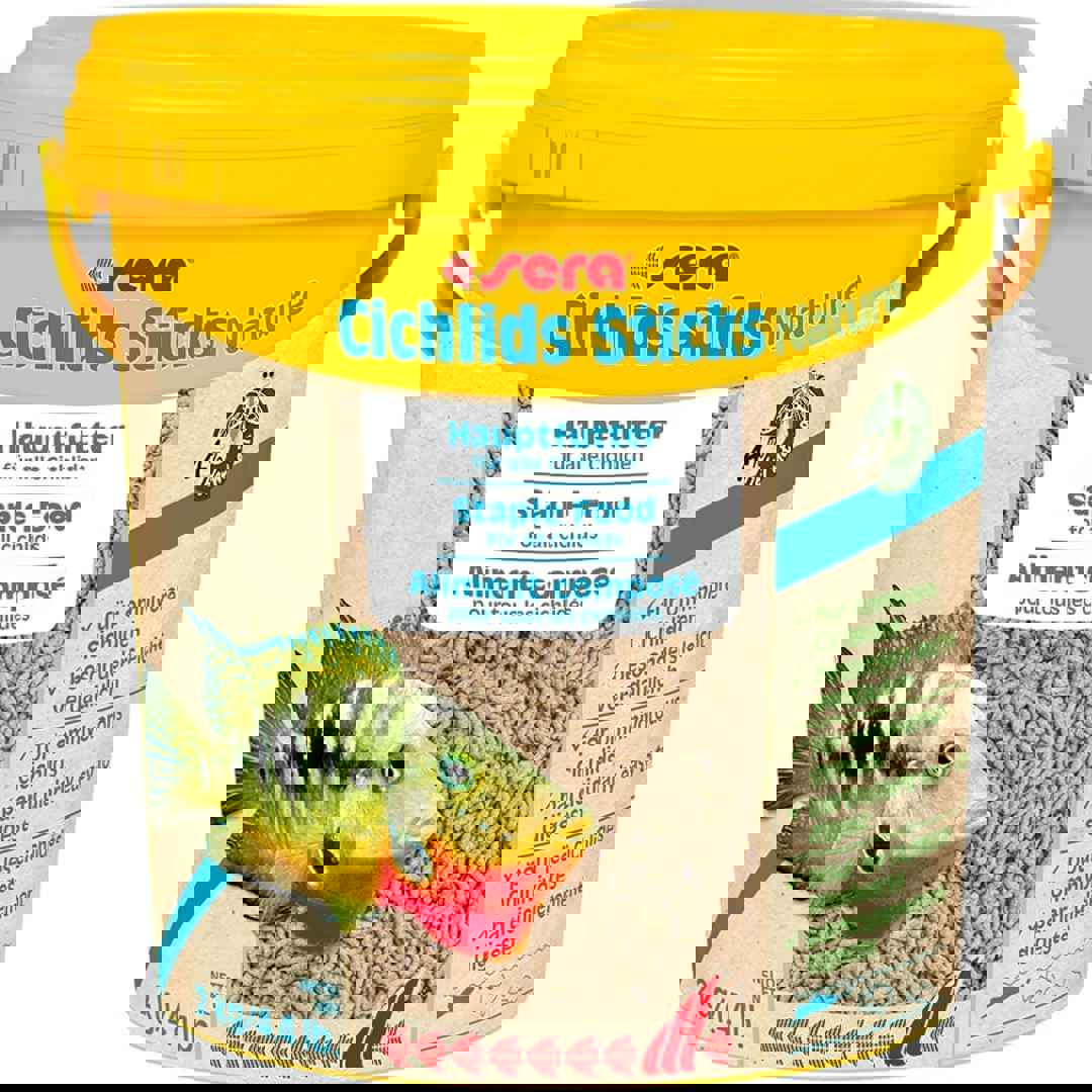 Sera Granured Nature - Храна за цихлиди 1000 мл. Sera Granured Nature е храна за цихлиди, например от езерата Малави или Танганайка, които се хранят предимно с безгръбначни. Предлага се в разфасовки от 20 гр. и 250, 1 000 мл. Високоенергийна храна за цихлиди. Инструкция за употреба: Хранете по няколко пъти на ден, но по толкова, колкото рибите могат да изядат за кратко време. Съдържание:рибно брашно, пшенично брашно, гамарус, бирена мая, планктон, хлебни продукти, Спирулина. Анализ:влага 6.7%, протеин 40.3%, мазнини 6.1%, влакнини 2.2%, пепел 9.9%.