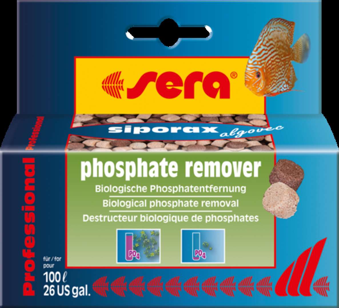sera siporax algovec Professional – съдържа бактерии и среда за тяхното размниожаване, които усвояват хранителните вещества на нежеланите водорасли (като фосфатите) и така се броят с тях по биологичен път, чрез хранителна конкуренция.