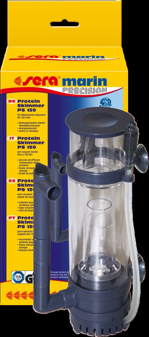 Sera Skimmer PS 130 -Протеин скимер, премахващ протеините от водата, които постоянно се отделят от микроорганизми, безгръбначни и риби, до 130 л. Протеин скимера е сърцето на филтрацията в морския аквариум. Те премахват протеините от водата, които постояно се отделят от микроорганизми, безгръбначни и риби. Мощните и икономични скимери премахват частиците и плаващи замърсители, и също така аерира водата в аквариума. Изключително малкият и спестяващ място sera marin Protein Skimmer PS 130 е един от най-малките скимери.