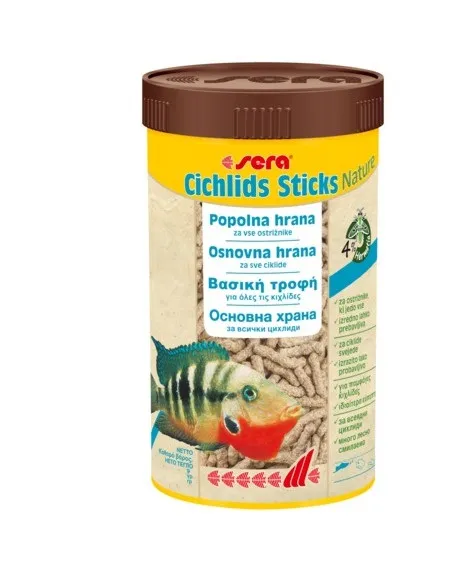 Sera Discus Nature - Пълноценна храна за всички дискуси и други цихлиди, 12 гр. Пълноценна храна за всички дискуси и други цихлиди. Съдържа: рибно брашно, пшенично брашно, брашна от миди и ракообразни, брашно от скариди, бирена мая, спирулина, масло от херинга, масло от дроб треска. Предлага се в разфасовки от 12 гр и 100, 250, 10 000 мл.