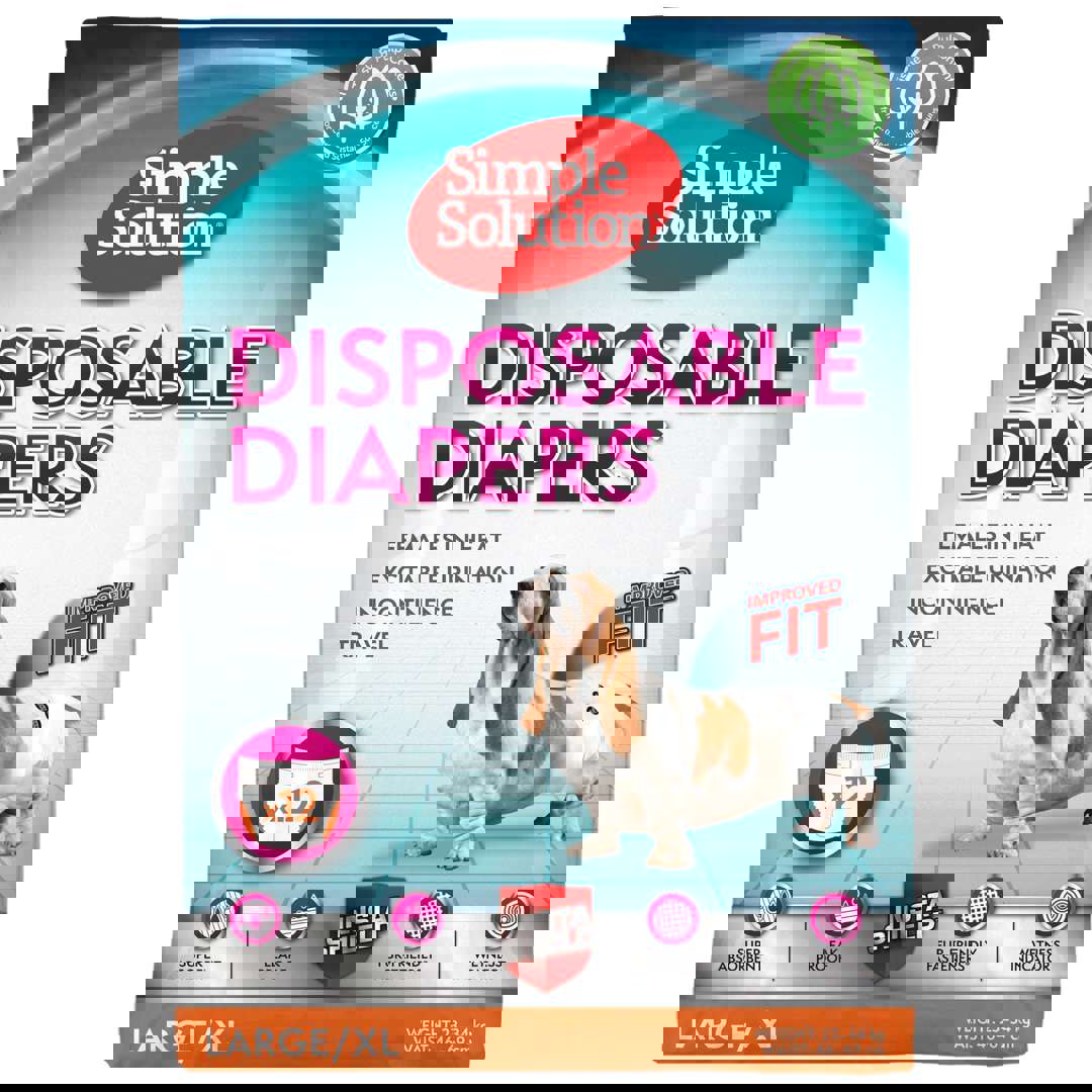 Памперси за женски кучета Simple Solution са безопасно и лесно решение. Можете да ги намерите в 5 различни размера. Имат силно абсорбираща повърхност и осигуряват дълготрайна защита.