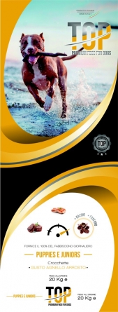 Сухата кучешка храна Top Dog - Puppy & Junior е без изкуствени овкусители, оцветители и ГМО. Тя е пълноценна, балансирана и съдържа всички необходими минерали и витамини за здравето и благосъстоянието на кучето. Предназначена е за подрастващи кученца от всички породи.
