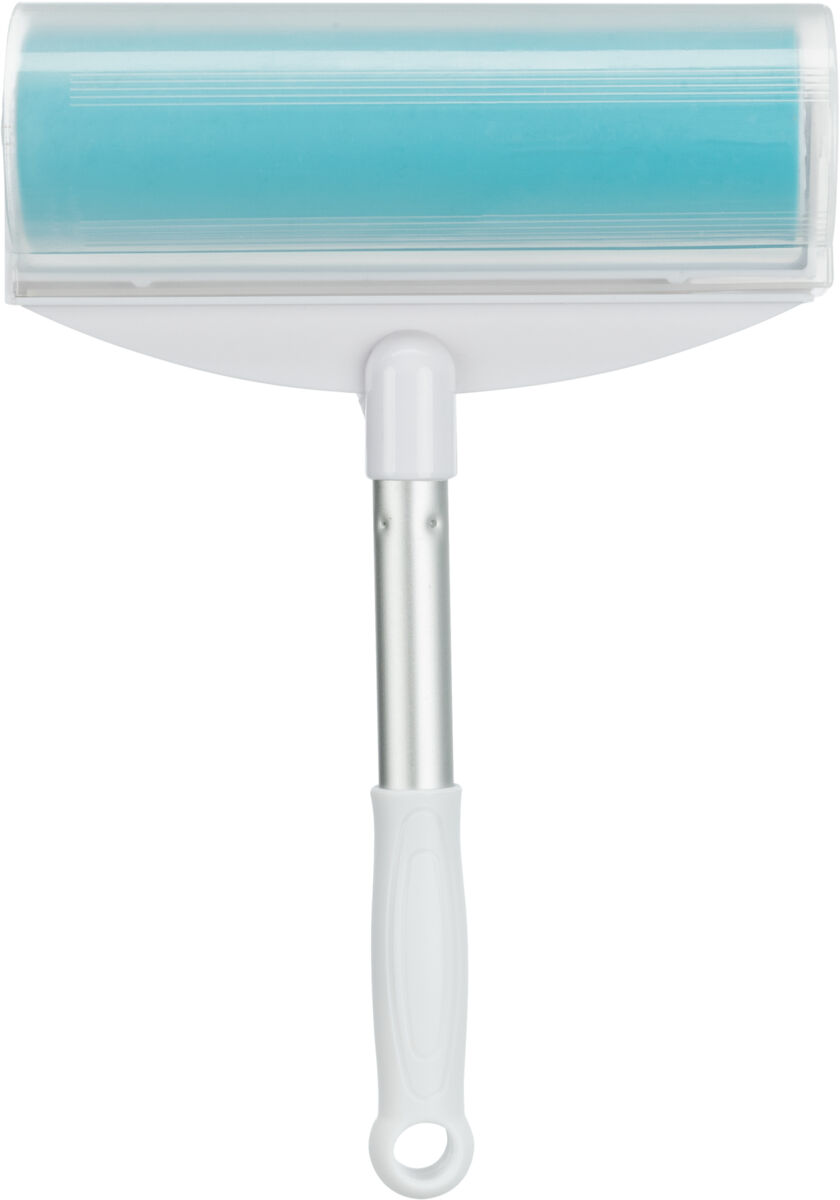 Camon Lint and pet hair roller with telescopic handle- Четка за премахване на косми Този самозалепващ се валяк отваля власинките и космите от домашни любимци от вашите дрехи, килими и мебели. Включва предварително нарязана 30-слойна (22x28см) ролка. Телескопична дръжка от здрав пластмасов материал. Дължина на дръжката - 77 - 121 см широчина - 28 см.