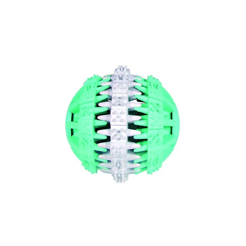 Trixie Denta Fun Mintfresh Ball - Топка за кучета за хигиена на зъбите Топка за кучета със специални зъбчета и отвори за по-добра устна хигиена и почистване на зъбите. *естествен каучук *с приятен ментов вкус *масажира венците Размер - 7.5 см