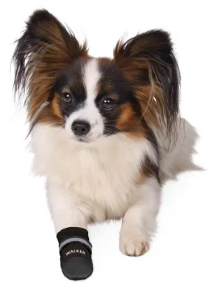 Trixie Walker Active Protective Boots XS/ S - Предпазни обувки за кучета от малки породи Здрава подметка на подложката осигурява неплъзгащо задържане (PVC) дишащ мрежест материал удобни за носене дълготраен специална защита на камениста или гореща земя предпазват от сол и песъчинки през зимата с отразяващи ивици с закопчалка за закачалки с две закопчалки за куки и примки цвят: черен