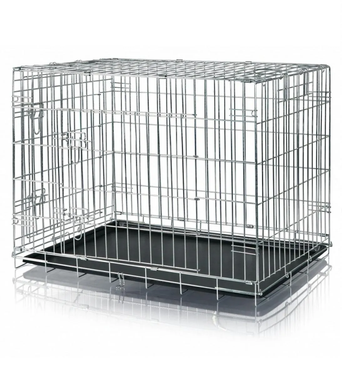 Duvo Plus - Сгъваема метална клетка с пластмасово дъно 2 врати и плъзгащ се пластмасов панел С крачета против хлъзгане Лесна за сгъване С дръжка за носене Дебелина решетки: хоризонтална 3,2 мм - вертикална 2,5 мм - рамка 3,8 мм