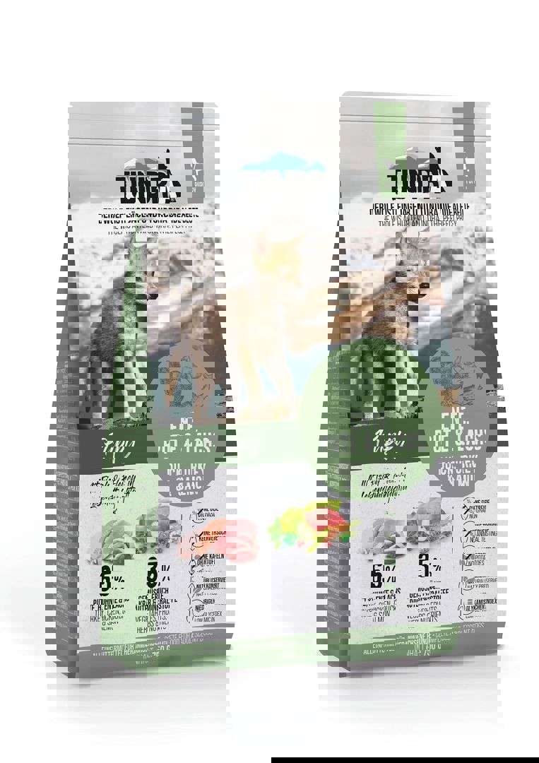 Картофи, заешко брашно, говежда мазнина, картофен протеин, лигноцелулоза, заешки черен дроб, рапично масло, сьомгово масло, натриев хлорид.