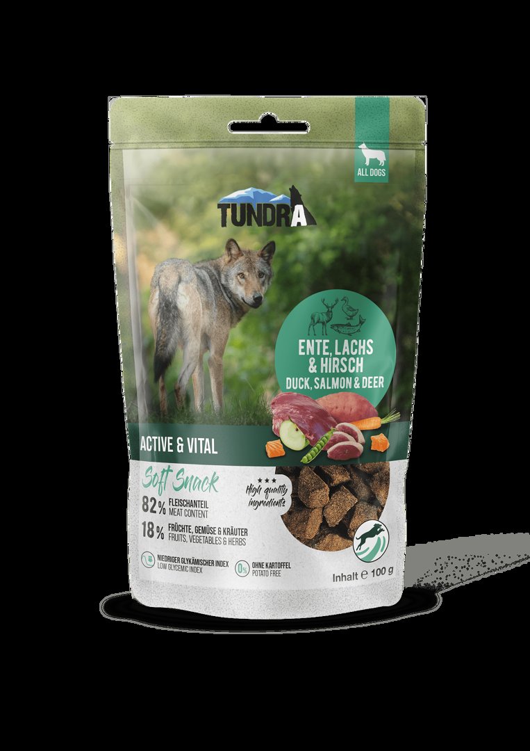 TUNDRA PUPPY е уникална комбинация висококачествено месо от свободно отглеждани пернати (пуйка, патица, пиле) и сьомга. Вкусната рецепта е без зърнени добавки и осигурява всички хранителни вещества, витамини и минерали, от които се нуждае Вашето подрастващо куче за здравословен живот