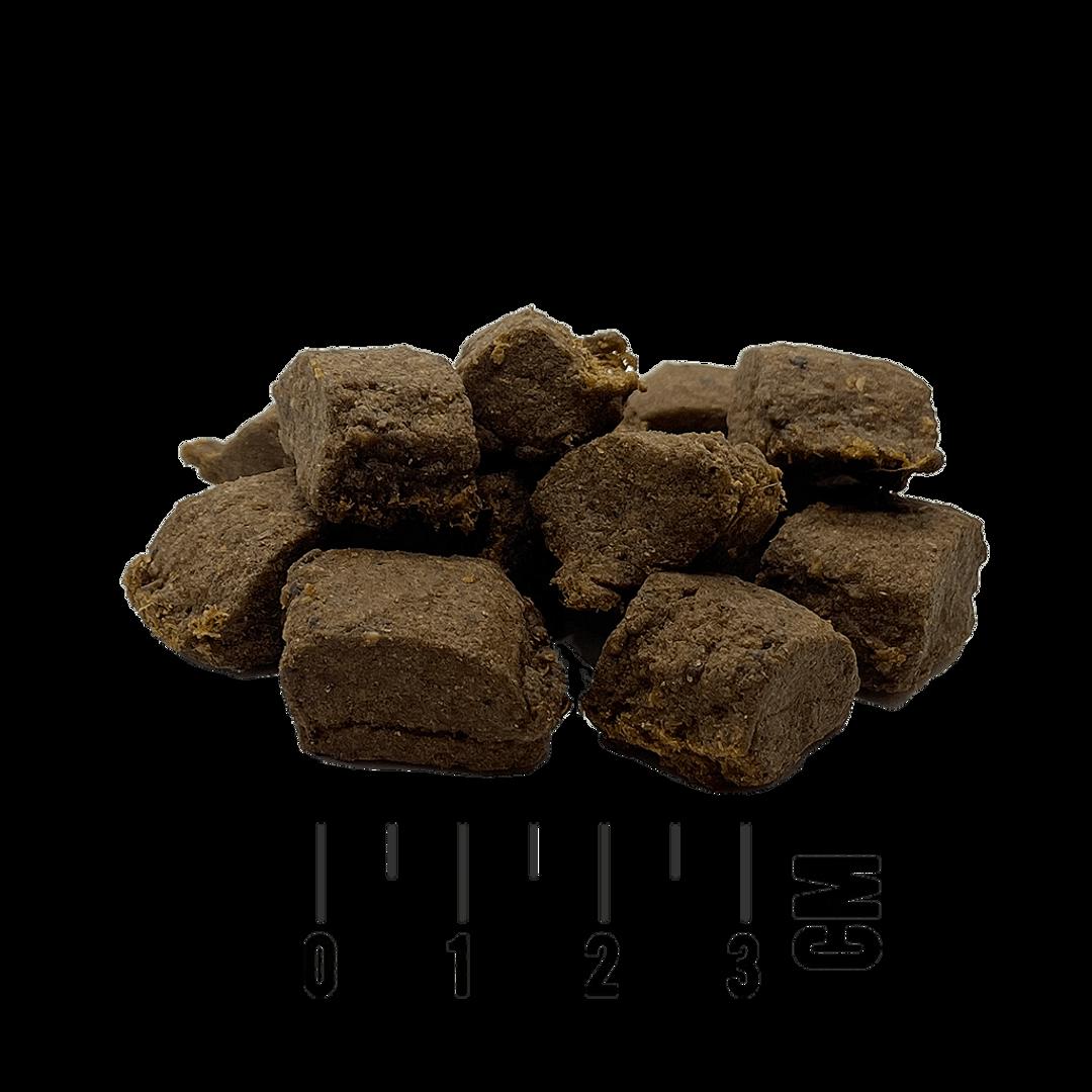 Tundra Snack Immune Turkey - Премиум лакомство за кучета, без зърно, снакс с пуешко месо. TUNDRA Snacks PUTE са особено вкусни за вашите любимци. 80% месо в комбинация с плодове и зеленчуци. Формулата без зърнени храни е богата на естествени антиоксиданти, подпомага имунната система и благоприятства здравето на вашия приятел с четири лапи! Състав: Прясно пуешко месо 65%, сух пуешки протеин 15%, сладки картофи, моркови, грах, магнезиев пропионат, ябълково кюспе, спирулина, арония, боровинки, магданоз, натриев хлорид Технологични добавки: антиоксидант Препоръка за хранене: Максимум 10% от препоръчителната дневна доза храна. 100 гр.